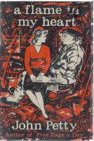 "George Binden has through twenty years of hard and honest toil, earned the reputation of the best liked and respected worker in the brass foundry in the Midlands where he is employed. At 38, a giant of a man, his life seems to run smoothly. But he is assailed by a secret dread and an equally secret passion. His work in the foundry is rotting his lungs, and he is sexually violently attracted by the eldest of his four daughters. Mr. Petty tells, in prose that is both evocative and moving, of the tragedy that overtakes this simple, bewildered, almost pagan man. It is the strength of this unusual, uncompromising novel that the author portrays a working-class family and its background without a trace of condescension, compassion or sentimentality. Freed from these handicaps he has the power utterly to convince. He can convey the very feel and smell of the foundry, the all-pervading drabness of the landscape; and his characters, primitive in their uncomplicated emotions, always close in their lives to the uglier aspects of nature, ring absolutely true. Mr. Petty is a young writer, and his novel bears traces of this fact, yet already he may claim to be following in the footsteps of such as Dostoievsky and D. H. Lawrence. A Flame in My Heart deals in violence - spiritual and physical - in passion and in disaster. It contains also, in its hero, a character as magnificently realised as any in recent fiction."