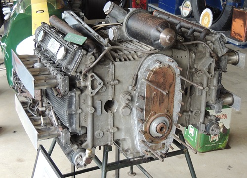 BRM H16 engine at the Caister Castle Car Collection. This engine is reputed to have been used for the type's only ever Grand Prix victory at the US GP 1966, Watkins Glen in the back of Lotus Type 43, chassis 43/1. |