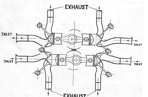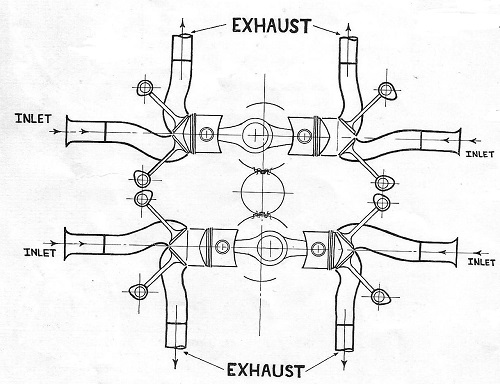 ![]() How the H16 should have been. This cross section shows - six camshafts - directly linked crankshafts - low centre of gravity - a very solid "lump" to support the rear suspension. |