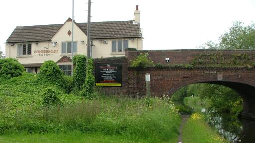 ![]() Taken looking West - 2/6/2007. Access from Norton Road (B4154) - around the back of the pub. The photo on the left with "The Fingerpost Pub" to the left. The photo on the right from 2001 as the Royal Oak pub (Ansells) to the left. 13 miles and 1 furlongs from Horseley Fields Junction