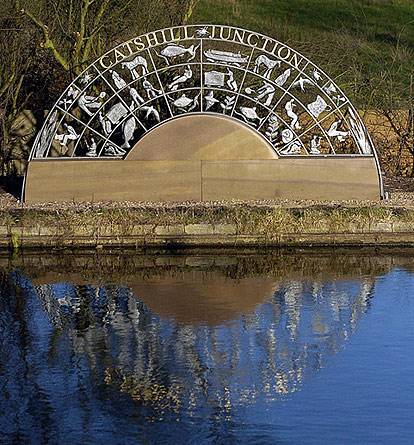 ![]() A sculpture from local artists Ron Thompson and Julie Edwards of Planet Art. British Waterways commissioned the piece of community artwork as part of an improvement of the canal network funded by £2 million from British Waterways and the European Regional Development Fund. Walsall Council Mayor, John Cook, and Mayoress, Lynn Staffiere, unveiled the work on 12 December 2005. Photo left - taken looking NorthEast - 10/04/2006. Photo right - copyright Planet Art. Location - https://www.openstreetmap.org/?mlat=52.64116&mlon=-1.92766#map=18/52.64116/-1.92766 Access via towpath opposite the sculpture. |