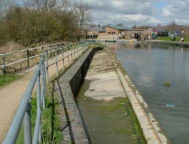 ![]() Access from Silver Street, Pier Street(pedestrianised) and Spot Lane(footpath). Taken looking NorthWest - main towpath on the left - short Silver Street towpath on the right. 15 miles and ¾ furlongs from Horseley Fields Junction The photo on the right taken 10/04/2006. Connects Clayhanger at Spot Lane (previously Little