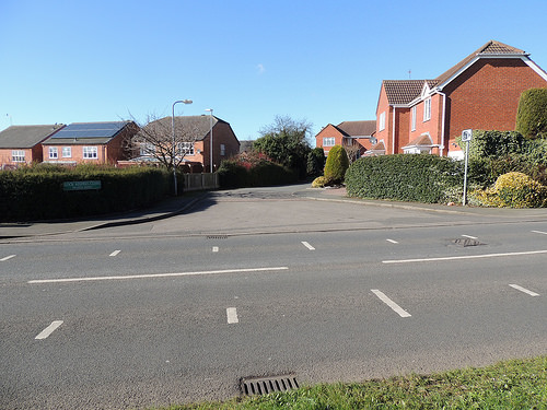 ![]() Looking west across Walsall Road at its junction with Lock Keepers Close Photo taken - 24/2/2016. ------ (More Photos in my Flickr album - Cannock Extension Canal) |