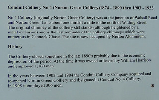 Norton Springs Branch to Norton Springs Basin (north)(https://www.google.co.uk/maps pointer ---- 52.6668, -1.9706) North of the basins was Conduit No.3 Colliery (Jerome's) At the junction of Brownhills Road and Burntwood Road,